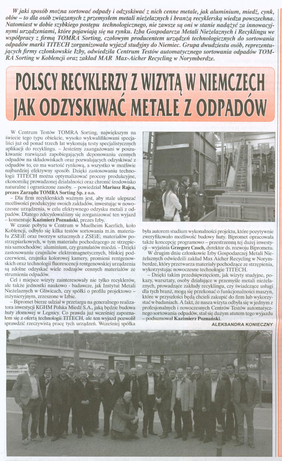 Polscy recyklerzy z wizytą w Niemczech, Magazyn Hutniczy, nr 21/22